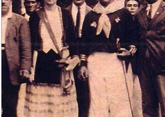 Año 1972. En la Imagen vemos a la Tamborrada del Alarde de San Marcial de Irun, en la Plaza de Urdanibia antes de la Arrankada.