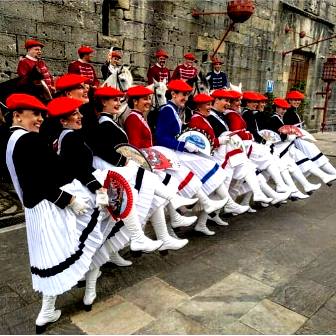Año 2018. Lara Olazabal Amunarriz. Cantinera de la Compañía Akartregi, del Alarde de Hondarribia, en esta simpática foto en la Plaza de Armas en 2018.
