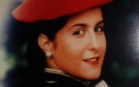 Año 2001. Laura Barandiaran Díez. Cantinera de la Compañía Buenos Amigos del Alarde de San Marcial de Irún en la bajada a la Iglesia 2001