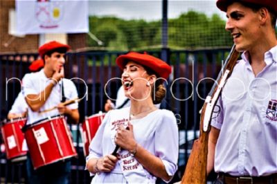 Año 2010. Beatriz Lara Cid. Cantinera de la Compañía Real Unión del Alarde de San Marcial de Irún el paso por el paseo Colon en 2010. fuente Vir Vir Vir
