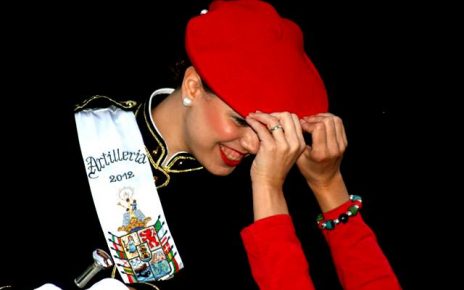 Año 2007. Leticia Pérez del Puerto Galbete. Cantinera de la Compañía Mixta del Alarde de Hondarribia el paso por la marina en el año 2007.