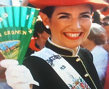 Año 2005. loitzune Ortiz del Rio. Cantinera de la Compañía Beti Gazte del Alarde de Hondarribia feliz en el año 2005.
