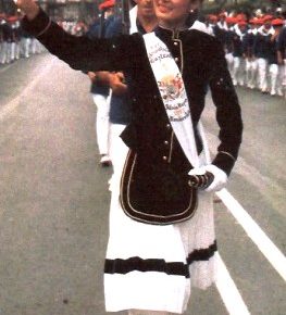 Año 2014. Mª Ortiz de Solorzano del Rey. Cantinera de la Compañía Mixta del Alarde de Hondarribia, en la presentación de Cantineras en el año 2014.