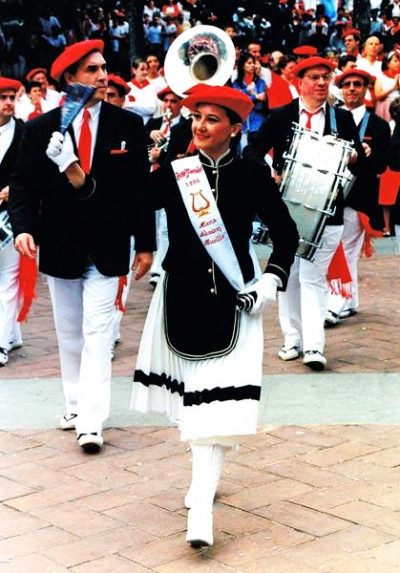 Año 1996. Mª Ramirez Murillo. Cantinera de la Banda de Música del Alarde de San Marcial de Irún desfilando en 1996