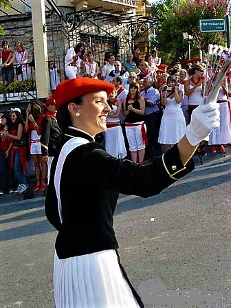 Año 2006.acarena Dilla Oliden. Cantinera de la Compañía Olearso del Alarde de Hondarribia sonriente en el año 2006.