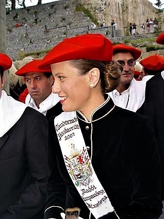 Año 2007. Maddi Kanpandegi Mitxelena. Cantinera de la Tamborrada del Alarde de Hondarribia en un momento de espera en el año 2007.