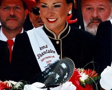 Año 2011. Maialen García Arruabarrena. Cantinera de la Compañía Azken Portu del Alarde de San Marcial de Irún en la ofrenda floral 2011.