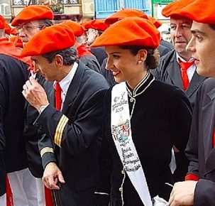Año 2014. Maialen Hernando Lekuona. Cantinera de la Compañía Montaña del Alarde de Hondarribia desfilando en el año 2014.