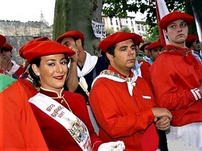 Año 2007. Maitane Marín Fernández. Cantinera de la Compañía Gora Gazteak del Alarde de Hondarribia en las murallas en el año 2007.