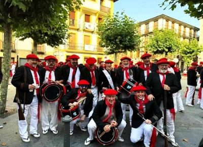 Año 2017. Maitane Mindegia Urroz. Cantinera de la Compañía Uranzu del Alarde de San Marcial de Irún, en la Plaza de Urdanibia, en 2017.