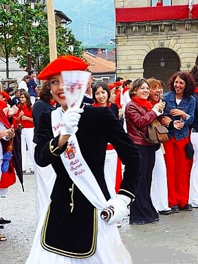 Año 2002. Maite Gurrea Prieto. Cantinera de la Compañía Belaskoenea del Alarde de San Marcial de Irún en San Juan 2002