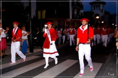 Año 2014. María Garmendia Amunarriz. Cantinera de la Compañía Gora Ama Guadalupekoa del Alarde de Hondarribia, acabando en el año 2014.
