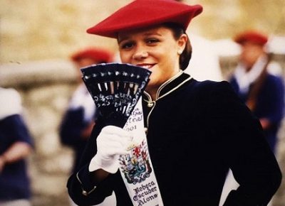 Año 2024. Marina Agueda Oyarzabal. En la presentación de Cantineras del Alarde de Hondarribia 2024.