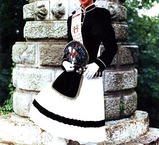 Año 2003. Marta Escudero San Martín . Cantinera de la Compañía Lapice del Alarde de San Marcial de Irún subiendo de la Iglesia 2003.