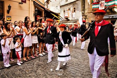 Año 2023. Marta Oronoz Biurrarena. Cantinera de la Compañía Bidasoa al paso por la Calle Mayor en el año 2023