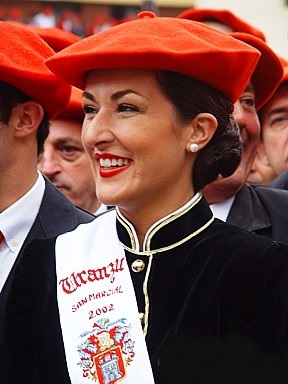 Año 2002. Miren de la Parra Amorena . Cantinera de la Compañía Uranzu del Alarde de San Marcial de Irún sonriendo en 2002