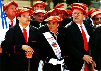Año 2000. Nagore García San Martín. Cantinera de la Compañía Ventas del Alarde de San Marcial de Irún en San Juan año 2000