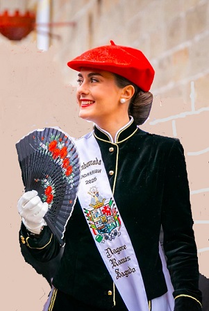 Año 2012. Tatiana Fernández de Casadevante Aguirreche. Cantinera de la Compañía Mixta del Alarde de Hondarribia en la calle Mayor en 2012. foto Floren Portu