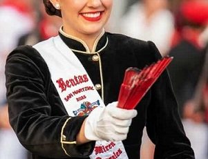 Año 2017. Nahiara Olascoaga Rubio. Cantinera de la Escolta de Caballería del Alarde de Hondarribia, en el zapatero del año 2017.