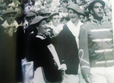 Año 1994. Nahualy Garcia Aguirre. Cantinera de la Tamborrada del Alarde de Hondarribia desfilando en 1994