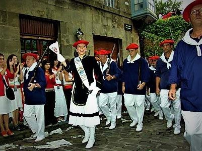 Año 2005. Naiara Escudero Alonso. Cantinera de la Compañía Gora Arrantzale Gazteak en la Puerta de Santa María en el año 2005.