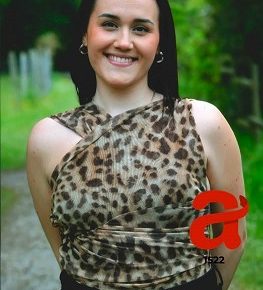 Año 2003. Naiara Larzabal Moreno. Cantinera de la Compañía Uranzu del Alarde de San Marcial de Irún sonriendo en el 2003