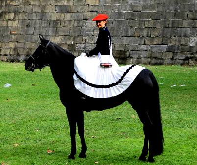 Año 2017. Nerea Burguete Sagarzazu. Cantinera de la Batería de Artillería del Alarde de Hondarribia, en las murallas en el año 2017.