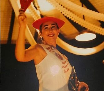 Año 2014. Nerea García Berasategui. Cantinera de la Compañía Real Unión del Alarde de San Marcial de Irún sonriendo en el 2014.