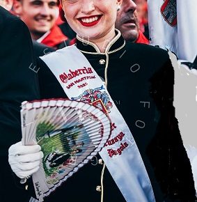 Año 2015, Noelia Matilla García. Cantinera de la Compañía Belaskoenea del Alarde de San Marcial de Irún en los ensayos del año 2015.