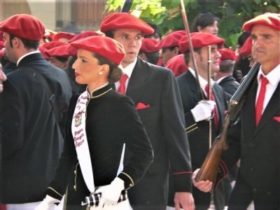 Año 2007. Oihana Campon Aguirre. Cantinera de la Compañía Bidasoa del Alarde de San Marcial de Irún en el monte el año 2007.