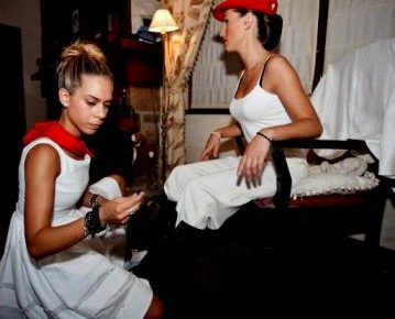 Año 2015. Patricia Elduayen Pérez. Cantinera de la Compañía Done Pedro Itsas Gizonen Kofradia del Alarde de Hondarribia, sonriendo en el año 2015.
