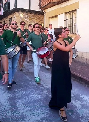 Año 2025. Patricia Maldonado Velasco. Cantinera de la Compañía Mixta del Alarde de Hondarribia en ls ensayos 2025
