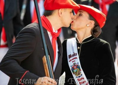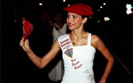 Año 2012. Patricia Mendibil González. Cantinera de la Compañía eal Unión del Alarde De San Marcial de Irún abanicándose en 2012.