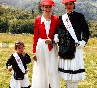 Año 2012. Patricia Mendibil González. Cantinera de la Compañía Real Unión del Alarde de San Marcial de Irún en la cuesta de San Marcial el 2012.