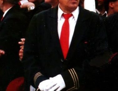 Año 2025. Paula Pérez Merino. Cantinera de la Compañía Belaskoenea del Alarde de San Marcial de Irún saludando en 2025