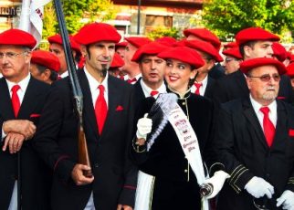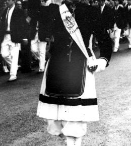 Año 1996. Pili Anuncibay Kanpandegi. Cantinera de la Compañía Olearso del Alarde de Hondarribia en B/N en 1996