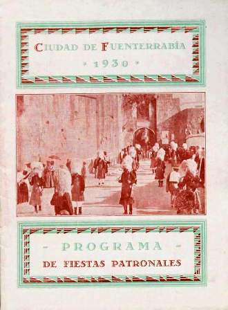 1930. Portada del Programa Oficial de Fiestas de Hondarribia. Publicado por el Ayuntamiento de Hondarribia, en 1930.