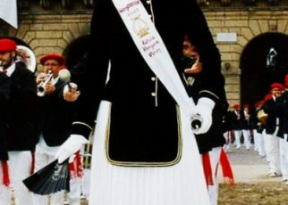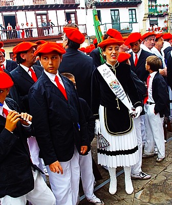 Año 2002. Rafaela Sainz de Vicuña Gortazar. Cantinera de la Compañía Mixta del Alarde de Hondarribia esperando en el 2002
