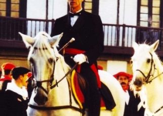 Año 2001. Rebeca Escudero Alonso. Cantinera de la Compañía Gora Arrantzale Gazteak con su amona en el año 2001