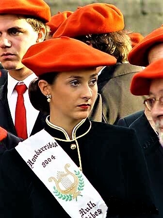 Año 2004. Ruth Ribes Lazkanotegi. Cantinera de la Banda de Música del Alarde de Hondarribia observando en el año 2004.