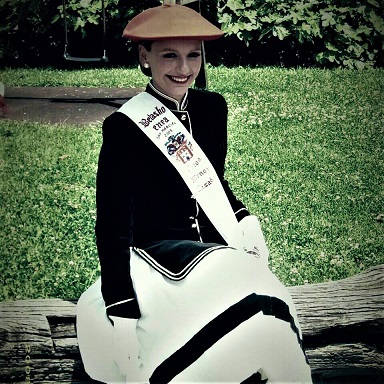 Año 2008. Saioa Menor Casado. Cantinera de la Compañía Belaskoenea del Alarde de San Marcial de Irún posando en el año 2008.