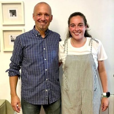 Año 2022. Igone Larruskain Azpilicueta. Cantinera de la Compañía Kosta del Alarde de Hondarribia entrando en la Plaza de Armas en 2022. foto Nuria Cordoba