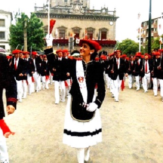 Año 1993. Saioa Urbistondo Alvarez. Cantinera de la Compañía Ama Shantalen del Alarde de San Marcial de Irún en San Juan 1993