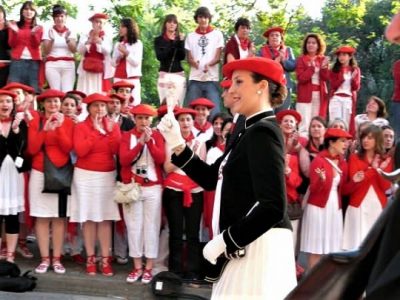 Año 2008. Sheila Becerro Martínez. Cantinera de la Compañía San Miguel del Alarde de San Marcial de Irún en la Arrankada del 2008.