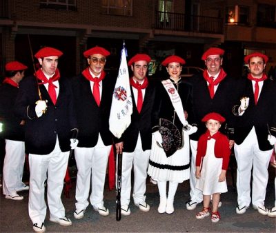 Año 2006. Silvia Bailador Gutierrez. Cantinera de la Compañía Uranzu del Alarde de San Marcial de Irún posando junto a los Mandos de su Compañía en el 2006.