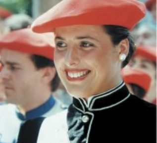 Precioso primer plano de la guapa Cantinera de la Tamborrada, Begoña Echeveste Martinez. Año 1984. Su madre fue Cantinera de nuestra Escolta de Caballería.