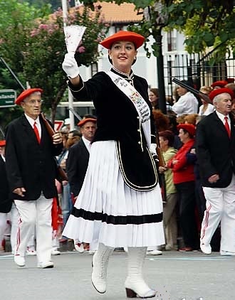 Año 2002. Idoia Fernández Zabalza. Cantinera Compañía Akartegi del Alarde de Hondarribia en el Zapatero del 2002. fuente festak