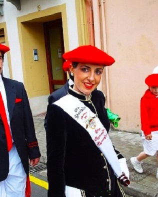 Año 2002. Ana Garmendia Garmendia . Cantinera Compañía Ama Shantalen del Alarde de San Marcial de Irún fuera del desfile en el 2002 fuente festak