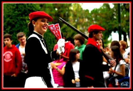 La cantinera de la Compañía Olearso, Ane Iriazabal Valle. Desfilando por la tarde por Xabin Arana. Fotografía de Maialen Cueto. Año 2013