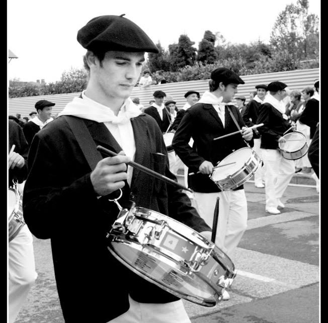 Compañía Done Pedro Itsas Gizonen Kofradia. Redobles en el desfile de la mañana. Fotografía de Maialen Cueto. Año 2013.